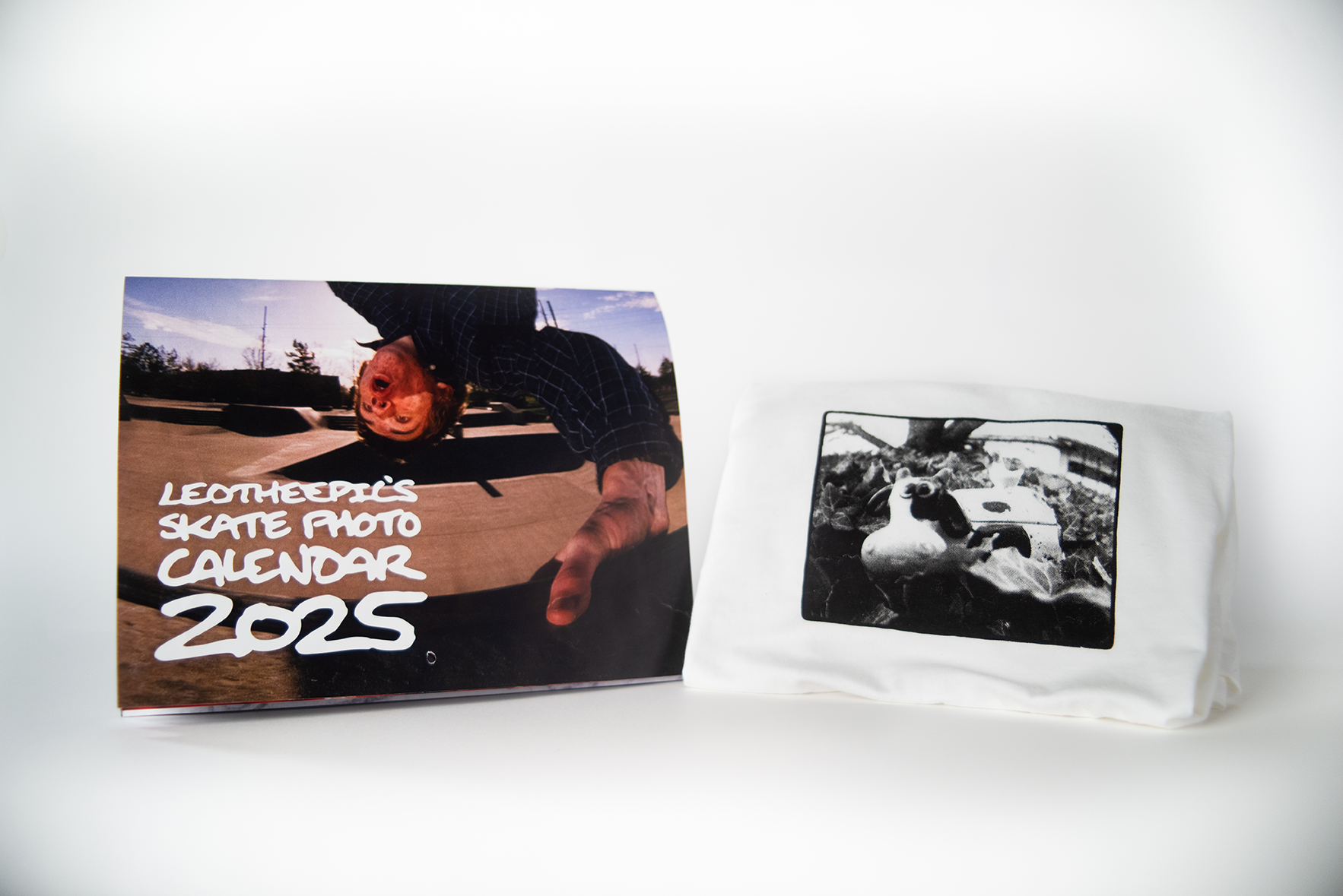 Typography, layout, and prepress (plus a t-shirt just for fun) for a wall calendar featuring the skate photography work of my good friend Leo Wilson.